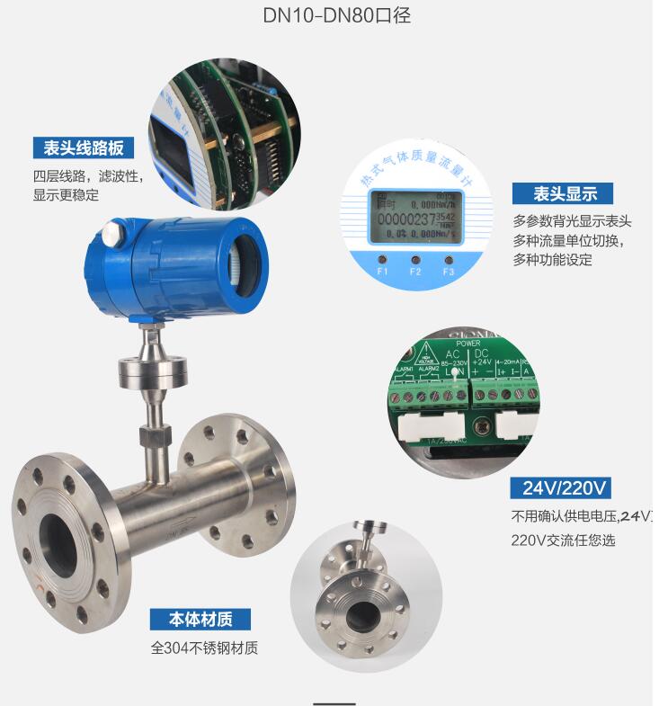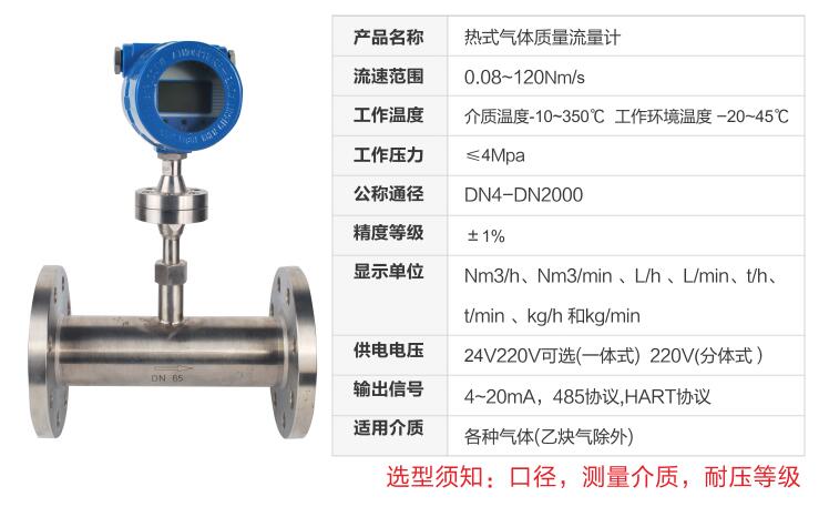 熱式氣體質量流量計是利用熱傳導原理測流量的儀表。該儀表采用恒溫差法對氣體質量流量進行準確測量。具有體積小、數字化程度高、安裝方便,測量準確等優點。