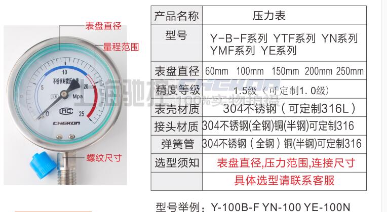 YN系列不銹鋼耐震壓力表 多規格定制 專業壓力測量