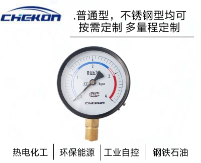 膜盒壓力表采用膜盒作為測量微小壓力的敏感元件。測量對銅合金不起腐蝕作用、無爆炸危險氣體的微壓和負(fù)壓,廣泛應(yīng)用于鍋爐通風(fēng)、氣體管道、燃燒裝置等及其他類似設(shè)備上。