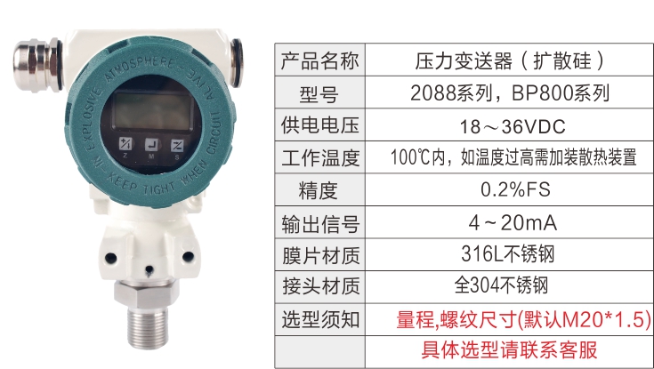 DBS316系列壓力變送器采用不銹鋼外殼隔離防腐,外形設計精巧,安裝十分簡便。SK-DBS316系列壓力變送器有擴散硅壓力變送器和陶瓷壓力變送器之分。