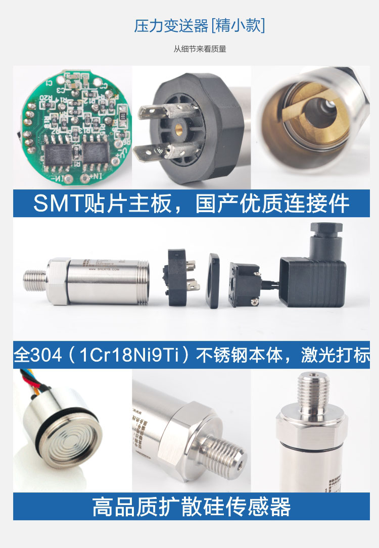 WP40系列精巧型壓力變送器靈敏度高、精度高、抗過(guò)載能力強(qiáng)。采用進(jìn)口傳感器制造,傳感器和放大電路高度集成;采全體不銹鋼為一體,電路零點(diǎn)和增益無(wú)須調(diào)整;抗干擾能力強(qiáng),耐酸堿,長(zhǎng)期穩(wěn)定可靠