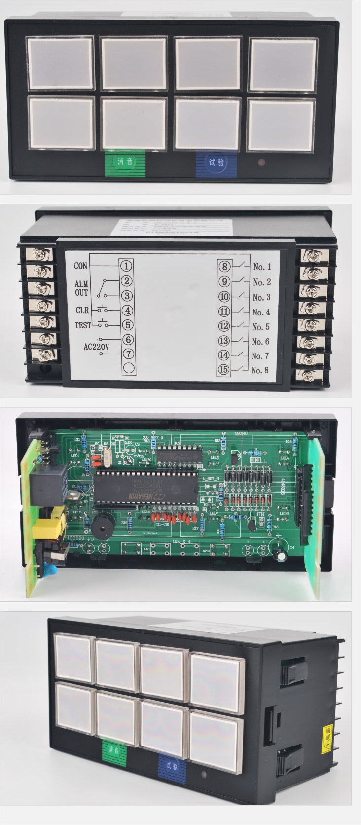 1、八路接點式(電平式訂貨時請注明)輸入信號,對應八個閃光顯示信號燈