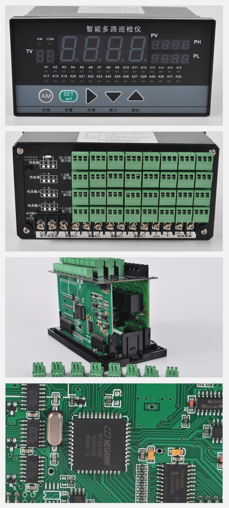 2、通過簡單的軟、硬件設定,即可分別對各輸入通道的分度號、量程、小數點位置等功能參數、控制參數的設定進行選擇,所有整定的參數均可永久保存,且掉電不丟失數據。