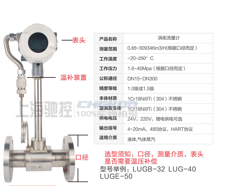 LUGB渦街流量計 溫壓補償 法蘭夾持安裝 氣體液體均可測量