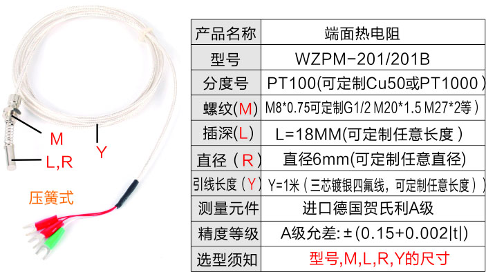 WZPM端面熱電阻 壓簧式 小空間測溫專業定制 PT100分度號