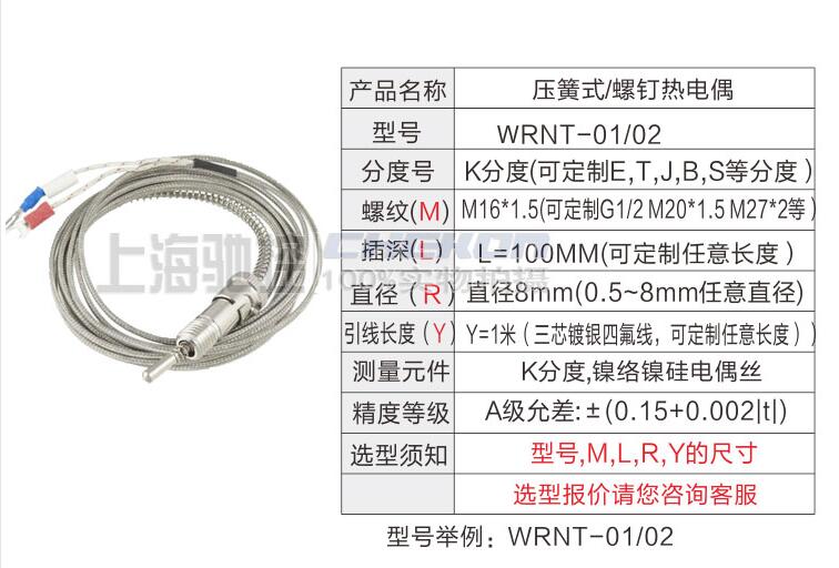 WRNT壓簧式熱電偶 端面 E,K,J,T分度專業(yè)定制