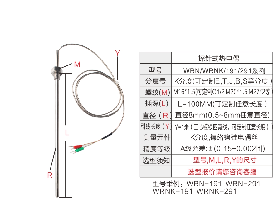 WRNK-191 291 探針熱電偶 E,K,J,T分度專業定制